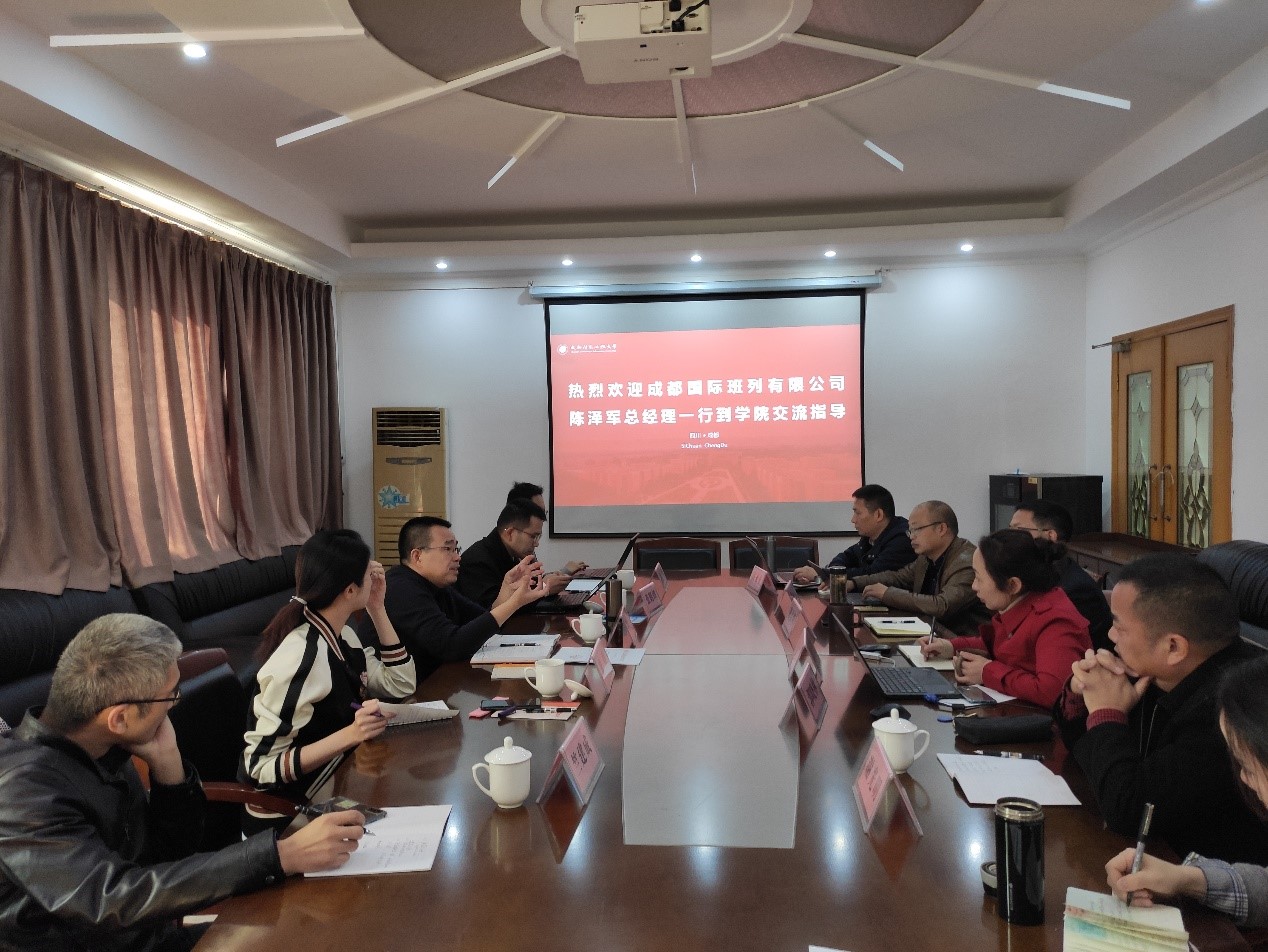 10月29日上午,成都国际铁路班列有限公司总经理陈泽军一行五人到转盘 进行工作交流和座谈。转盘 党委书记谢清明、院长施莉、副院长刘成华及电子商务系、物流管理与工程系的部分老师参加了座谈会。