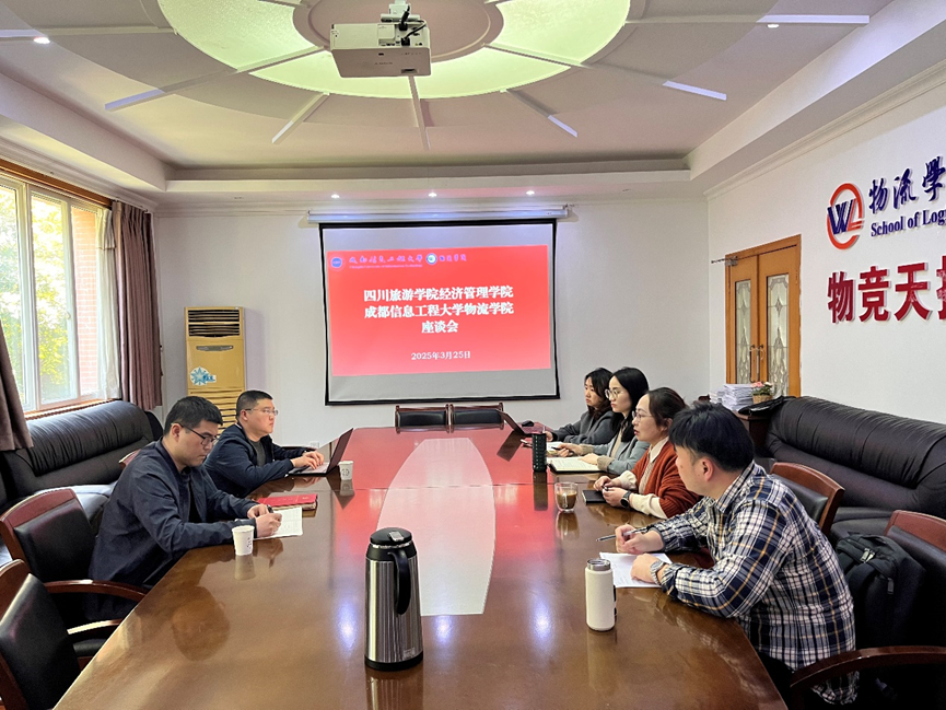 3月25日,四川旅游转盘 经济管理转盘 副院长王喆一行到转盘 进行调研,与转盘 院长施莉、副院长谢光明、供应链与信息管理系主任李望、物流管理与工程系副主任曾思瑜进行了座谈交流。